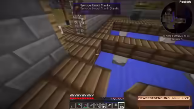 02:12:02Es wird mit dem Bau einer Fischerhütte begonnen, die stilistisch an die anderen Häuser angepasst werden soll. Die Hütte soll teilweise im Wasser stehen, ähnlich wie ein Steg. Dabei werden verschiedene Holzarten wie Brucewood und Birkenwood verwendet, sowie Stone Bricks. Der Fokus liegt auf der Dekoration des Bereichs, ähnlich wie bei einem Wasserfall in der Nähe. Es wird ein kleiner Steg gebaut und überlegt, wie groß die Fischerhütte werden soll, um die darin befindliche Anlage unterzubringen. Die Fischerhütte wird relativ groß, um die Fischer und die Anlage unterzubringen, wobei darauf geachtet wird, dass die produzierten Ressourcen auch verwendet werden. Das Design der Fischerhütte wird im Laufe des Baus angepasst, wobei der Eingang möglicherweise verschoben wird, um mehr Platz zu schaffen. Es werden Details wie Treppen und Zäune hinzugefügt, und es wird geplant, den Fluss breiter zu machen. Abschließend wird das Dach der Fischerhütte gebaut, wobei darauf geachtet wird, dass es von außen schnuckelig aussieht, während innen eine große Maschine verborgen ist.