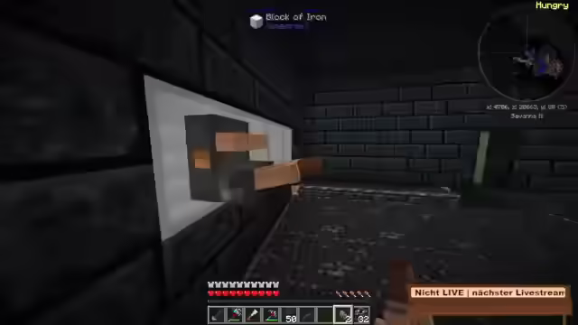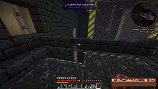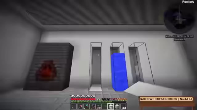 07:19:49Es wird an den Wartungsschächten gearbeitet, die sich nach unten erstrecken, bis sie nicht mehr benötigt werden. Der Plan ist, diese Schächte fertigzustellen, was durch die Nutzung von Blöcken im Inventar beschleunigt wird. Ein Flug zum Labor ermöglicht es, die Taschen zu leeren und Factory-Blöcke zu holen. Es werden Überlegungen zu Glas, Glowstone und Carpentatüren angestellt. Dunkles Stahlleder und Chromatite werden ebenfalls berücksichtigt. Es wird erwähnt, dass in einem idealen E-System solche Blöcke automatisch in den Ofen gelangen und in Komatite-Blöcke umgewandelt werden. Factory Blocks werden mitgenommen und in Wire umgeschlüsselt. Carpenter Türen, ein Hammer, Beleuchtung und Eisenblöcke werden vorbereitet, wobei vier Eisenblöcke für zwei Türen benötigt werden. Holz wird für den Eingangsbereich und Carpenter Ecken für eine abgerundete Optik in der Höhle eingeplant. Die Idee, den Reaktorraum im gleichen Stil zu bauen, wird in Betracht gezogen, da diese Blöcke angeblich gut Strahlung abhalten.