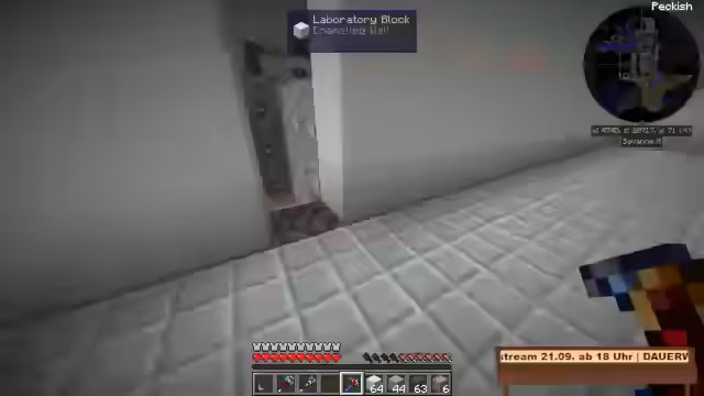 07:29:23Der Eingangsbereich der Höhle wird als fertiggestellt betrachtet und als zufriedenstellend empfunden. Hier wird ein klares Konzept für den Zugang zur Anlage etabliert: normale Personen dürfen nur im Hauptgang laufen, während autorisiertes Personal die Wartungskanäle und Kabelschächte nutzen darf. Es wird darüber diskutiert, in Zukunft an jeder Ecke Crafting-Tables aufzustellen, um den Weg zum Labor zu minimieren. Anschließend wird die Größenordnung des Raumes für den angedachten Reaktor und die Thermodynamikanlagen evaluiert.