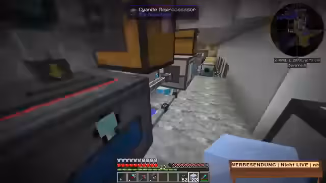 07:09:17Der Streamer beginnt mit der Planung für den zukünftigen Reaktorraum, in dem eine massive Stromversorgung für das ME-System entstehen soll. Es wird überlegt, den Raum heller zu gestalten, wobei die reaktortechnische Beleuchtung jedoch nicht wirklich hell sein wird. Zuerst sollen die Wassertanks aus dem vorherigen Stream eingebaut werden. Der Bau des Raums wird sich grundlegend vom bisherigen Plan unterscheiden. Während der Arbeit stellt der Streamer fest, dass er vergessen hat, den Boden zu legen und es nicht genügend Blöcke dafür gibt. Step Assist in den Schuhen wird als extrem nützlich für das Bauvorhaben bezeichnet.