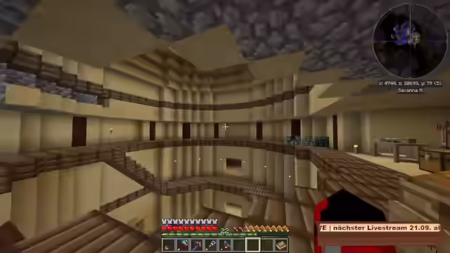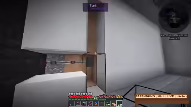 05:50:27Es wird angekündigt, dass die Verkabelung und Verschönerung der Wand im nächsten Stream erfolgen soll. Der Stream findet am Sonntag um 19 Uhr statt und dauert voraussichtlich 2-3 Stunden. Zudem wird die Wiedereinführung des Coin-Systems angekündigt, bei dem Zuschauer durch aktive Teilnahme Coins sammeln können, die sie für Gewinnspiele einsetzen können. Subscriber von Twitch erhalten dabei einen Vorteil in Form von geringeren Kosten pro Los. Es wird ein Dankeschön an das Team ausgesprochen, das sich um die Umsetzung des Coin-Systems gekümmert hat. Die hohe Effizienz der Enderperlen-Produktion wird festgestellt. Ein Travel Anchor wird platziert, um die Navigation zu erleichtern. Es wird der Wunsch geäußert, einen schnellen Zugang zum Keller zu haben.