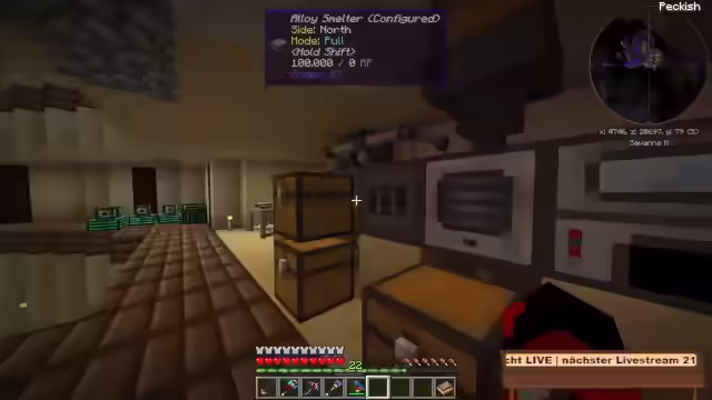 00:00:00Es wird festgestellt, dass noch 33.000 Enderperlen vorhanden sind, was überraschend viel ist. Diskussionen entstehen über die Verwendung von Tesseracts und deren korrekte Verbindung, wobei die Notwendigkeit einer Frequenz erwähnt wird. Es gibt Spekulationen über die Ursache für das Ausbleiben von Monstergeräuschen, was zu der Frage führt, ob Tobi involviert ist. Der Streamer äußert den Wunsch nach dem entspannenden Geräusch sterbender Monster im Hintergrund. Tobi wird herbeiteleportiert, um die Situation zu untersuchen, was zu humorvollen Interaktionen führt, die im Chat für Erheiterung sorgen. Es wird über den Bau eines Wasserrads und dessen Platzierung diskutiert, wobei die Effizienz und der Lärmpegel berücksichtigt werden. Die Automatisierung von Prozessen, insbesondere die Herstellung von Hamburgern, wird als ein wichtiger Fortschritt hervorgehoben, der den Arbeitsaufwand reduziert hat. Es wird ein Vergleich zum Wandel von handgemachten zu automatisierten Burger-Restaurants gezogen, wobei der Fokus auf Effizienz und Profit liegt.