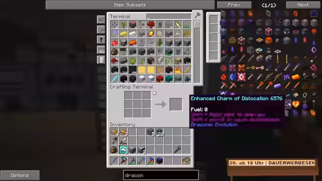 00:00:00Zu Beginn des Streams richtet sich der Kanalbesitzer in seinem Modpack 'After Humans' ein. Er stellt fest, dass er mehr Enderperlen übrig hat, als angenommen, und beschließt, diese zu verarbeiten. Der Fokus liegt darauf, ein Tesseract-System aufzubauen. Nachdem er die notwendigen Ressourcen wie Kupfer und Bronze hergestellt hat, konfiguriert er den Tesseract für den Item-Transfer. Dabei muss er Frequenzen festlegen und stellt fest, dass das System nur in einer Richtung empfangen kann, um die gewünschte Verbindung zu einer Quarry herzustellen.