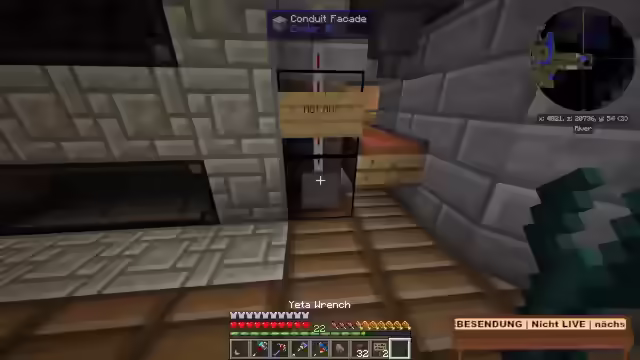 03:53:14Ein Schalter von Immersive Engineering wird gesucht, um die Mobfarm zu steuern. Es werden Lampen in der Farm installiert. Die Mobfarm wird voraussichtlich nicht vollständig fertiggestellt, aber ein großer Teil soll geschafft werden. Der Streamer verweist auf das Projekt Novus als Beispiel für seine Baugeschwindigkeit. Die Lüfter in der Mobfarm werden mit Redstone aktiviert, wobei grüne Kabel verwendet werden. Conduit-Fassaden werden angebracht, um die Verkabelung zu verbergen. Die Farben der Kabel werden zur Unterscheidung der Funktionen verwendet: Rot für Lampen, Grün für Lüfter. Isoliertes Redstone und Redstone Alloy werden für die Stromleitungen hergestellt. Die Lampen und Lüfter werden mit Schaltern gesteuert, und es wird überlegt, weitere Farben für die Steuerung zu verwenden. Ein Steuerungspult für die Mobfarm soll eingerichtet werden, idealerweise mit einem Hexenspawner, um das Glowstone-Problem zu lösen. Wireframes werden für die Kabel verwendet, die zu den Lampen führen, und ein anderer Farbcode wird für den nächsten Schalter verwendet.
