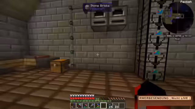 06:18:10Der Streamer wendet sich der Erweiterung der Basis zu. Die Absicht ist, eine verwucherte, runtergekommene Stadt zu bauen, die als Fluchtort für die im Modpack angesiedelte Bevölkerung dient. Es wird die Baugrundlage durch eine automatische Steinproduktionsanlage geschaffen, die Cobblestein in Stonebricks umwandelt. Diese Anlage ist kompakt und läuft kontinuierlich, um die Materialien für den anstehenden Stadtausbau bereitzustellen. Die Planung für den Stadtaufbau und das erste Gebäude beginnt bereits.