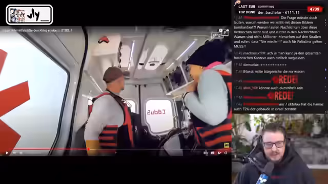01:38:01Humanitäre Helfer, wie die deutsche Organisation KADOS, arbeiten unter extrem schwierigen und gefährlichen Bedingungen im Gazastreifen. Bei einem Einsatz am 4. März 2025 wird ein Konvoi der Hilfsorganisationen von israelischen Soldaten gestoppt, es werden Schüsse auf den Krankentransport abgegeben, die Quelle ist jedoch unklar. Der Streamer kritisiert, dass die IDF dokumentierte Lügen verbreite, obwohl es sich um eine Armee handele, die einen Völkermord begehe. Politische Äußerungen von Helfern würden ihre Arbeit jedoch erschweren.