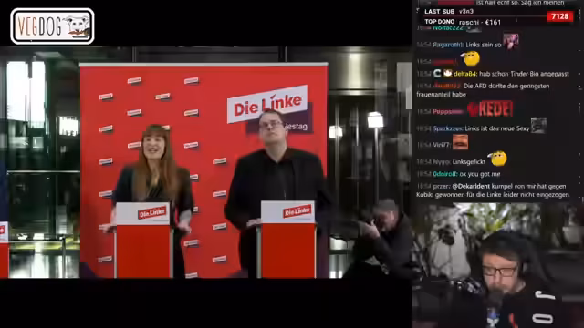 01:38:31Der Streamer äußert sich zum überraschenden Erfolg der Linkspartei bei der Bundestagswahl, die deutlich über der 5%-Hürde lag und in den Bundestag einzieht. Er hinterfragt die Motivation derer, die sich über linke Erfolge nicht freuen, und betont, dass es wichtig ist, Erfolge zu feiern. Er erwähnt auch, dass die Linkspartei zurzeit im Endspurt des Wahlkampfs für die größte Überraschung sorgte.