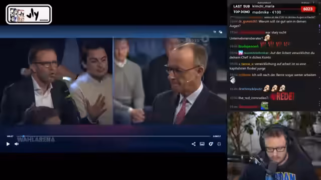 00:35:58Es werden Geburtstagsgrüße an Lea ausgerichtet und ein Stream mit Ines Schwerdtner angekündigt. Dieser Stream wird als 'Zu Gast bei Freunden' bezeichnet, in Abgrenzung zur Behandlung von Ausländern in Deutschland während der WM. Es wird eine humorvolle und unterhaltsame Atmosphäre erwartet. Es wird eine Frage bezüglich eines Updates zu Katzenfutter von Vectoc beantwortet, wobei betont wird, dass es keine Teaser gab und Nachfragen zu weit in der Zukunft liegenden Plänen verfrüht sind. Es wird auf Umfragen hingewiesen, die die Linke als stärkste Partei bei den unter 18-Jährigen sehen, aber gleichzeitig darauf hingewiesen, dass es sich nur um Umfragen handelt und eine Kanzlerschaft von Friedrich Merz wahrscheinlich ist. Es wird die Frage aufgeworfen, ob eine rot-rot-grüne Koalition möglich wäre, was jedoch verneint wird, da die Linke in der Opposition gebraucht wird, um gegen neoliberale Politik vorzugehen.