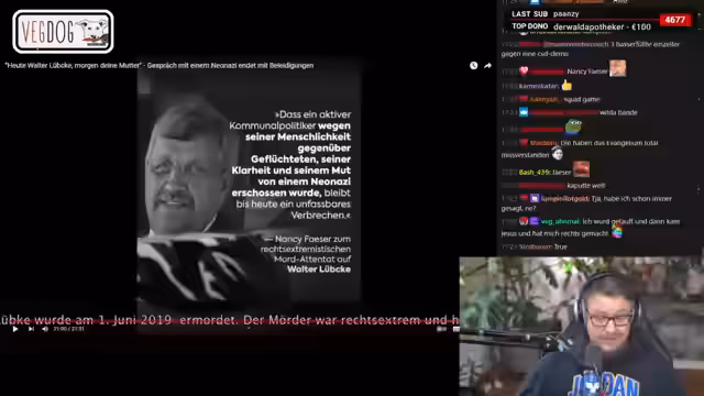 00:37:50Der Streamer erwähnt, dass Hessencam seinem YouTube-Kannel folgt und ein Abonnent geworden ist, was er sehr freut. Er spricht über die Nazi-Elite in Hessen und dass es erfrischend sei, dass es auch außerhalb Ostdeutschlands Nazis gebe. Das gebe dem Ganzen eine neue Perspektive, vor allem für westdeutsche Stadtkinder. Er erwähnt auch, dass sein Haupt-YouTube-Kanal dieses Wochenende nicht bespielt wurde, weil er im Urlaub war.
