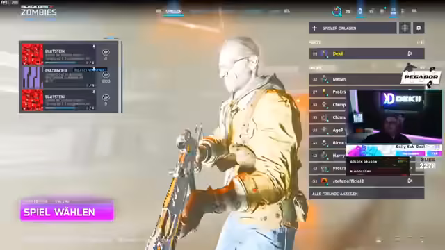 07:55:59Die Spieler setzen ihre hocheffiziente Farming-Strategie fort, bei der sie sich gegenseitig in Runden mit Elite-Zombies unterstützen. Die Methode ermöglicht es ihnen, Tarnungen extrem schnell freizuschalten, was zu großer Begeisterung führt. Der Streamer äußert jedoch auch körperliche Beschwerden, da seine Finger vom intensiven Spielen schmerzen. Er überlegt sogar, auf Tastatur und Maus umzusteigen, um die Belastung zu reduzieren. Trotz der physischen Herausforderungen bleibt die Motivation hoch, da die Strategie so gut funktioniert. Die Community ist weiterhin aktiv beteiligt, teilt Tipps und koordiniert ihre Aktionen, um maximale Effizienz zu gewährleisten und die begehrten Tarnungen zu erhalten.