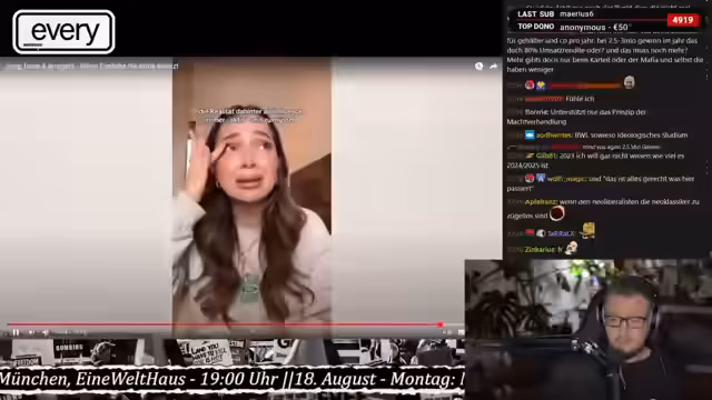 02:55:26Der Streamer beleuchtet das Phänomen der Scheinselbstständigkeit im Content-Bereich, viele Cutter würden freiberuflich arbeiten, aber tatsächlich abhängig beschäftigt sein. Er kritisiert, dass Influencer oft selbst keine betriebswirtschaftliche Ausbildung haben, aber als Arbeitgeber auftreten. Der Streamer bemerkt, dass viele Influencer aufgrund ihrer Sympathiewerte alles tun können, ohne Konsequenzen fürchten zu müssen. Er warnt, dass dies gefährlich ist, da Fakten dann keine Rolle mehr spielen, sondern nur noch die Person, die etwas tut.
