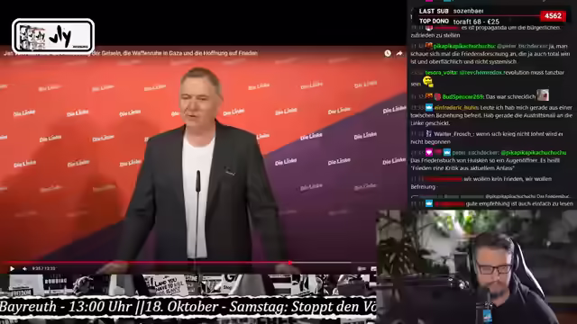 05:09:53Die Einladung Englands zu einer Wiederaufbaukonferenz zu Gaza wird begrüßt, wobei betont wird, dass die Palästinenser selbst über den Wiederaufbau entscheiden müssen. Die Beteiligung Deutschlands an dieser Konferenz wird kritisch gesehen, da Deutschland im Nahostkonflikt keine neutrale Position einnimmt. Es gehe Deutschland nicht um Frieden, sondern um Mitbestimmung über die zukünftige Herrschaft. Deutschland habe in den letzten Jahrzehnten mit entschieden, wer dort herrscht, Waffen geliefert und diplomatische Rückendeckung gegeben. Deutsche Konzerne wie Axel Springer würden zudem Immobilien auf besetztem Gebiet verkaufen und damit Millionen machen. Es wird kritisiert, dass Deutschland ein unglaubliches Bedürfnis nach moralischer Mitbestimmung der Weltordnung habe, anstatt die Weltordnung als Herrschaftskonstrukt zu hinterfragen. Es gehe um die Verteidigung der eigenen Machtposition und die Mitbestimmung in der Weltordnung.