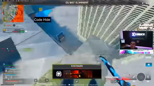 03:24:26Ein intensives Gefecht entbrennt um den Control-Tower, bei dem das Team unter starkem Druck steht und von mehreren Seiten beschossen wird. Trotz eines gezielten Zupushs gelingt es einem Gegner, unerwartet anzugreifen und ein Teammitglied auszuschalten. Die Runde endet mit einer Elimination, was zu Frustration über eine verspielte Top-5-Position führt.