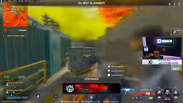 05:22:14Die Runde von Teams ist von taktischen Ungenauigkeiten geprägt. Der Streamer bemängelt, dass er noch keine einzige Zone gesichert hat und das Spielen in beengten Räumen wie dem Kasten zur Falle wird. Die Kommunikation im Team funktioniert nicht optimal. Er kauft eine Drohne, hat aber keine Munition mehr und ist gezwungen, sich defensiv zu verhalten, anstatt den Gegner aktiv anzugreifen. Er versucht, sich eine vorteilhafte Position zu sichern, scheitert aber an den fehlenden Ressourcen und der Platzierung der Gegner.