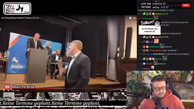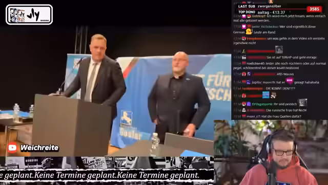 01:39:47Der Stream richtet sich zunehmend gegen politische Gegner und interne Konflikte innerhalb einer Partei, vermutlich die AfD. Es wird kritisiert, dass Parteikollegen zwischen öffentlich und privat nicht unterscheiden können. Auch werden persönliche Beleidigungen ausgetauscht und es wird die Frage nach demokratischen Prinzipien innerhalb der Partei gestellt. Dabei werden auch kontroverse Themen wie Klimapolitik und der Umgang mit der Presse angesprochen.