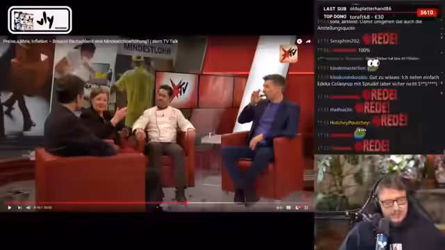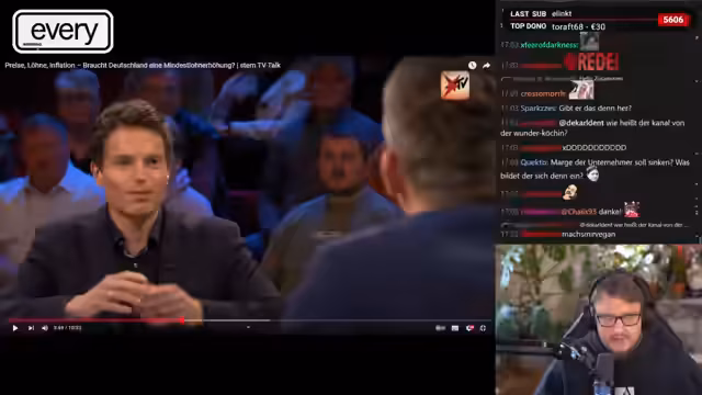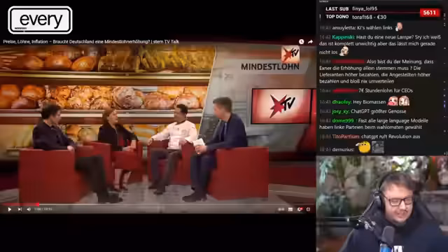 00:33:49Als Vorbereitung auf einen kommenden europäischen Krieg werden Kriegsfilme wie 'James Ryan' und 'Enemy at the Gates' geschaut, was die Bereitschaft zum Sniper-Dasein steigert. Es wird die Frage aufgeworfen, ob das Erschießen deutscher Nazis in den eigenen Reihen als Abschuss zählt. Die Vorbereitung besteht aus dem Konsum von Drohnenvideos, die die Zerstörung von 'Orks' zeigen, was zur Entmenschlichung führt. Es wird betont, dass im Falle eines Krieges nur für China gekämpft würde, idealerweise in einer Power Armor. Die Diskussion schwenkt zu wirtschaftlichen Themen wie Mindestlohn, Inflation und der Notwendigkeit einer Mindestlohnerhöhung, wobei die Meinung vertreten wird, dass der Mindestlohn eher gesenkt werden sollte, da die Kosten letztendlich von den Konsumenten getragen werden müssen. Es folgt die Auseinandersetzung mit einem Stern-TV-Beitrag über einen Bäckermeister, der die Erhöhung des Mindestlohns kritisiert.