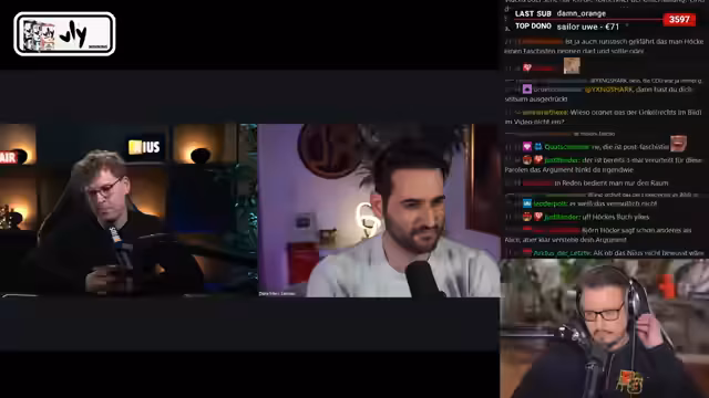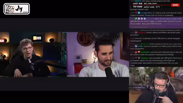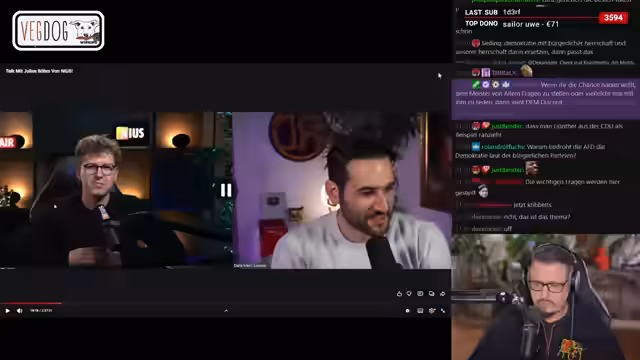 02:12:17Als Hauptthema des Streams wird die Analyse eines langen Gesprächs aufgenommen, in dem der News-Journalist Julius Bö einen linken Politiker (angeblich Dara) interviewt. Es werden Themen wie die CDU-Politik, der Ukraine-Krieg und die AfD besprochen. Der Streamer versucht, die Aussagen von Bö zu hinterfragen und dem Zuschauer einen „Live-Fact-Check“ zu bieten. Er kritisiert, dass der Fokus oft auf oberflächlichen Abgrenzungen statt auf inhaltlicher Tiefe und klaren Begründungen für politische Standpunkte liegt.