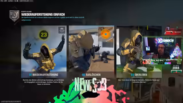 05:38:10Der Streamer konzentriert sich intensiv auf das Gameplay, mit Fokus auf den Waffen-Loadout und die neue Event-Tarnung. Er probiert verschiedene Waffen aus und äußert sich skeptisch über eine bestimmte Vollautomatische Schrotflinte, die er als "world's worst" bezeichnet. Er erwähnt die neue Perk-Mechanik für Sniper, die das Snipen erschwere, da Gegner durch ein Camper-Perk nicht mehr direkt ausgeschaltet werden können. Es wird die neue Event-Tarnung vorgestellt, die in allen Spielmodi unterschiedlich ist und besonders im Zombie-Modus sehr gelobt wird.