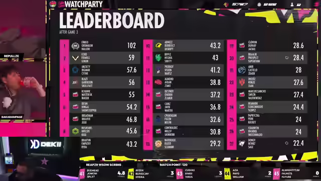 02:12:20Es wird über die aktuelle Strategie und die Wahl des Landeplatzes (Lumber) diskutiert, wobei der Streamer seine Abneigung gegen Lumber äußert. Er kritisiert, dass das Team zu schnell "Picks" (Kills) abgibt und dadurch Fights verliert. Es wird die Frage aufgeworfen, ob Lumber ein guter Ort zum Kämpfen ist, und es werden Vergleiche mit anderen unbeliebten Orten wie Quarry gezogen. Der Streamer räumt ein, dass er in der letzten Runde "getrollt" hat und dass dies sein Fehler war. Es wird über einen bestimmten Spot diskutiert, den ein Spieler (Siki) gespielt hat, und ob es sich dabei um einen "Staglitch" (Fehler im Spiel) handelte. Der Streamer gibt zu, dass er zu weit vorne am Stamm war und nicht rechtzeitig herunterspringen konnte. Es wird über die TTK (Time To Kill) im Spiel gesprochen und dass man bei der aktuellen TTK keine Zeit zum Reagieren hat. Abschließend wird überlegt, ob man in der letzten Runde einen bestimmten Zug hätte machen sollen.