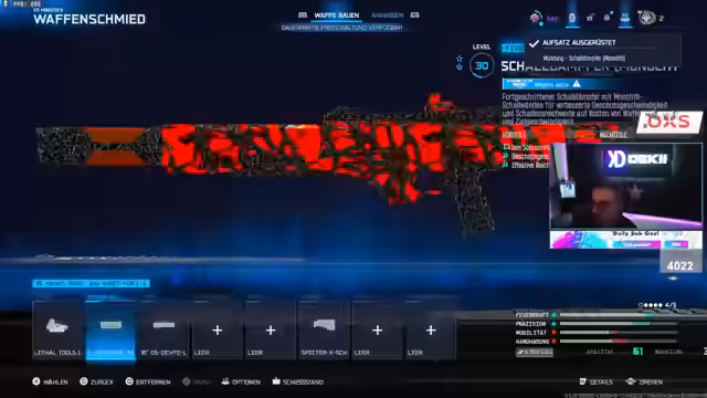 04:33:01Die Konzentration liegt auf dem Gameplay. Der Streamer beschäftigt sich intensiv mit dem Leveln von Waffen und speziellen Prestige-Aufsätzen, insbesondere der EGR. Er teilt mit, dass er diese Waffe gelevelt und den Prestige-Aufsatz aktiviert hat, und diskutiert die Vor- und Nachteile, während er sein Loadout für den bevorstehenden Kampf anpasst.