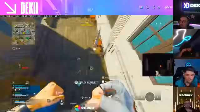 08:15:34Im entscheidenden Moment des Spiels gerät das Team in einen heftigen Kampf auf einem Dach. Es kommt zu einem dramatischen Duell, bei dem der Streamer im engen Raum mit zwei Gegnern konfrontiert wird. Er wird eliminiert, was seine Frust über das Geschehen und den Verlust des Spieles deutlich zum Ausdruck bringt.
