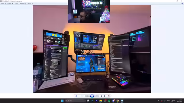 00:06:55Dekii eröffnet den Stream mit einer enthusiastischen Begrüßung und kündigt an, dass heute ein Omen-Fertig-PC für 2.799,00€ im neuen Warzone getestet wird. Er betont, dass dieser PC bereits zuvor in Black Ops 7 getestet wurde und heute in WoW (World of Warcraft) zum Einsatz kommt. Der Streamer demonstriert sein komplexes Multi-Monitor-Setup, das aus einem Hauptmonitor fürs Gaming, einem vertikalen Monitor für den Chat und weiteren Displays für OBS, Spotify und Discord besteht. Dieses Setup ermöglicht ihm, alle wichtigen Informationen parallel im Blick zu behalten, wie etwa Chat-Nachrichten von vor 15 Minuten.