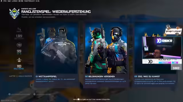 00:17:14Das Gespräch richtet sich auf den Ranked-Modus, speziell auf das Erreichen von Rängen und Camouflages. Der Streamer berichtet, dass er in der letzten Saison 1000 SR Plus gemacht hat und nun wieder im Irradiated-Rang ist. Er hofft, dass die neue Camo für Top-50-Platzierungen gut aussieht und erwähnt, dass Ranked-Matches voller Cheater seien und die Motivation für den Grind leide. Es wird auch die Existenz von Shadow-Bändern und Ranked Restrictions diskutiert, deren genaue Regeln nicht klar sind.