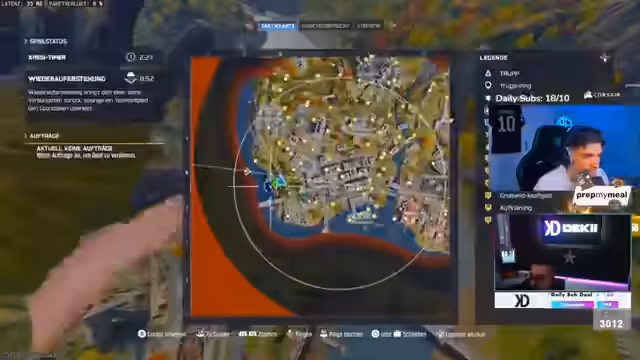 03:10:28Das Team landet erfolgreich und beginnt eine wilde Jagd auf die Gegner. Der Streamer und seine Mitspieler nutzen Taktiken wie Drohnen, um Feinde aufzuspüren, und nehmen gezielt Kämpfe auf sich. Nachdem sie zwei Gegner ausgeschaltet haben, werden sie selbst von einem dritten überrascht und eliminiert, was das Spiel für ihr Team beendet. Die Endphase ist geprägt von viel Aktion, Verwirrung und schnellen Wechseln in der Spielsituation.