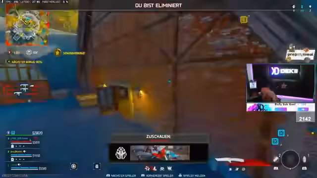 05:20:14Der Streamer und seine Mitspieler befinden sich in einem intensiven Custom Match. Es finden zahlreiche Feuergefechte statt, bei denen Gegner an verschiedenen Positionen auf der Karte geortet und bekämpft werden. Der Fokus liegt auf der Kontrolle wichtiger Gebäude wie DVDs und White Building. Das Team koordiniert Angriffe, plant Überfälle und muss sich gleichzeitig gegen Spawns von Gegnern verteidigen, die aus verschiedenen Richtungen drohen. Es kommt zu knappen Situationen und Siegeinlagen, bei denen Gegner mit dem letzten Schuss niedergestreckt werden. Das Spielverhalten der Gegner wird als sehr wissend und aggressiv beschrieben, was für hohe Gegenwart in der Lobby spricht.