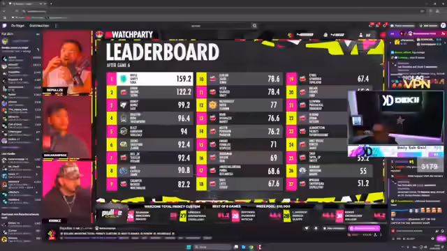 Es wurde ein 10.000-Dollar-Turnier im Warzone-Modus ausgetragen. Während des Events kam es zu intensiven Kampfphasen und taktischen Manövern. Nach einer Unterbrechung wurden Turniere und zukünftige Spielmodi besprochen. Der Fokus lag auf sportlichen Leistungen und der Turnierplanung.