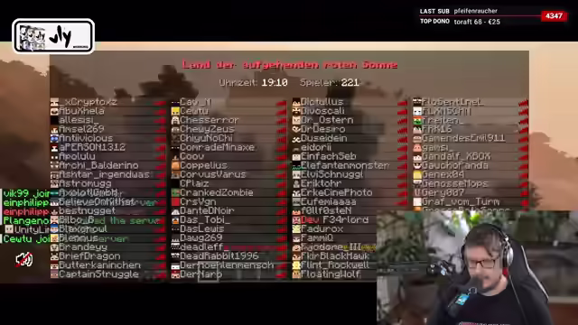 03:10:53Es wird dringend darum gebeten, dass mehr Zuschauer dem Server beitreten, um einen Stresstest durchzuführen und Daten für die Kapazitätsplanung zu sammeln. Die Spieler diskutieren über die hohe Zuschauerzahl im Verhältnis zur geringen Anzahl von Spielern auf dem Server und vermuten, dass ein Großteil der Zuschauer Bots sind. Es wird erklärt, dass Java 1.21.1 benötigt wird, um dem Server beizutreten. Die Spieler tauschen sich über verschiedene Items im Spiel aus, darunter eine Lenin-Statue und ein Weeps-Lehr-Schwert. Es wird überlegt, ob prominente Persönlichkeiten wie Fabian Lehr an dem Spiel teilnehmen könnten. Die Entwickler geben bekannt, dass der Server stabil läuft, aber weitere Daten benötigt werden. Die Spieler erklären den Zweck des Stresstests und die Gestaltung des Projekts, einschließlich der drei Inseln mit unterschiedlichen Themen und Ressourcenknappheit. Es wird erwähnt, dass die meisten 'Weirdos und Weeps' auf einer bestimmten Insel konzentriert sind, was zu Spannungen führt. Die Spieler diskutieren über die geplanten Rollenspiel-Elemente des Projekts und die beeindruckenden Baukünste einiger Spieler. Es wird über die Möglichkeit von fünf Servern und die Notwendigkeit, die Kapazität zu testen, gesprochen. Die Spieler schlagen vor, unerwünschte Spieler von den Dächern zu werfen oder ein Gendersprachverbot einzuführen, um die Spielerzahl zu reduzieren. Der Starttermin des Projekts wird bekannt gegeben, und es kommt zu Diskussionen über den Bau von Tunneln unterirdisch.
