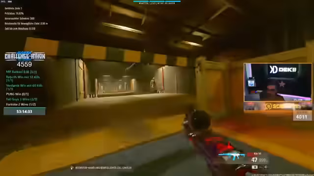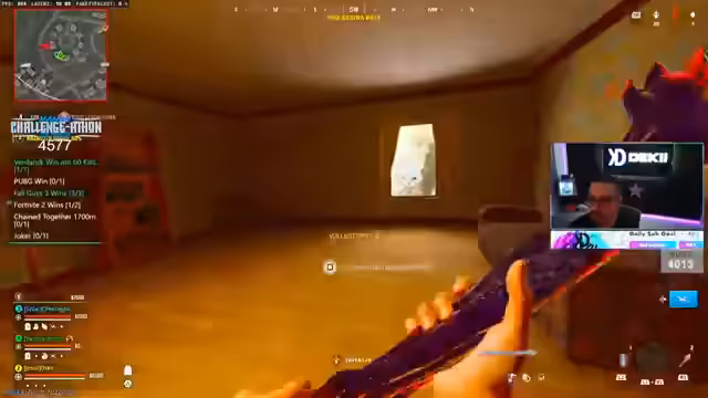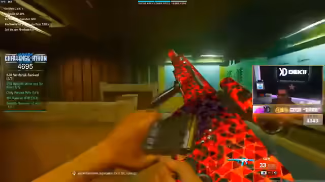 04:50:31Das Gameplay wird wieder aufgenommen, mit einer neuen taktischen Herangehensweise. Das Team plant einen gezielten Angriff auf Gegner in einer bestimmten Zone. Der Druck, die Challenge zu gewinnen, bleibt hoch. Der Streamer kommuniziert die neue Strategie mit seinem Team und zeigt sich entschlossen, die Runde für sich zu entscheiden, trotz der wachsenden Anspannung und der vielen Gegner.