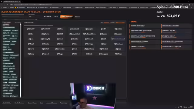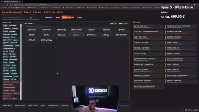 00:06:55Nach der Begrüßung der Community und der üblichen Chat-Interaktionen stellt der Streamer das Format des heutigen Events vor. Es handelt sich um ein "Fitna Draft 2.0" für das Black Ops Royale Turnier von BlankTournament. Das Besondere dieses Drafts ist die gegenseitige Sabotage: Der ausgeloste Spieler wählt nicht seinen eigenen Partner, sondern den für einen anderen Spieler, wobei er versucht, ihm einen schlechteren Mate zuzuweisen, um dessen Siegchancen zu minimieren.