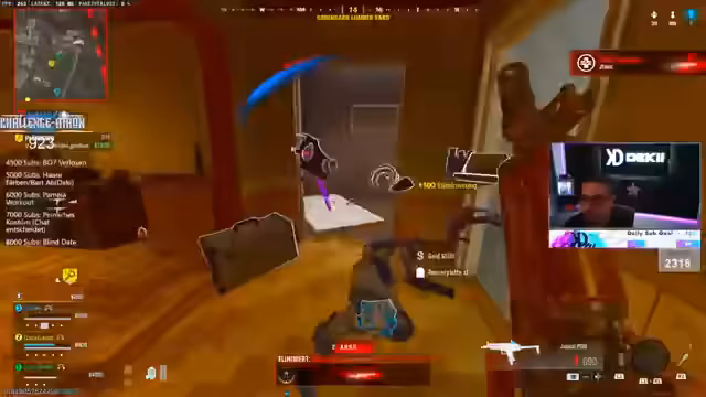 07:43:39Der Stream zeigt eine intensive Runde eines 1v1v1 Duells mit ständigen taktischen Manövern. Der Spieler wechselt zwischen strategischem Vorgehen, wie das Anvisieren von Flaggen, dem Bauen von Fallen und dem Koordinieren mit einem队友, und hektischen, schnellen Schusswechseln. Kommentare wie 'Pop, pop, pop, pop, pop' und 'Baitet ihn, baitet ihn, baitet ihn' verdeutlichen die schnellen, aggressiven Aktionen während der Kämpfe, in denen das Ziel ist, die Gegner auszuschalten oder zu eliminieren.