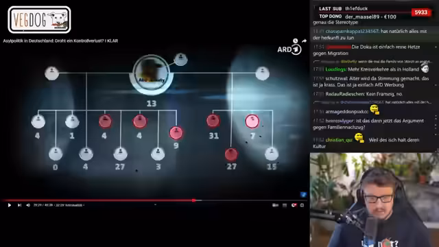 00:30:43Der Streamer kündigt an, eine ARD-Reportage zur Asylpolitik zu besprechen, die er als rechtsradikales Klatschmagazin des Öffentlich-Rechtlichen bezeichnet. Er kritisiert die Narrative der Sendung, die sich seiner Meinung nach hauptsächlich auf Ausländerfeindlichkeit konzentriert und suggeriert, Israelfreundlichkeit sei im Grunde Islamfeindlichkeit. Der Streamer äußert seine Skepsis, da viele die Reportage als das Beste, was die ARD in den letzten 20 Jahren produziert habe, preisen, was ihm Bedenken bereitet.