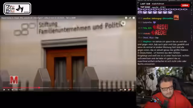 01:27:59Der Streamer reflektiert über die Vererbung von Familienunternehmen und die Rolle von Stiftungen, wobei er die Stiftung Familienunternehmen kritisch betrachtet, da sie eher milliardenschwere Unternehmen als kleine Handwerksbetriebe vertritt. Er diskutiert die politische Positionierung und argumentiert, dass wissenschaftliches Denken und Empathie automatisch zu einer linken Haltung führen würden. Er betont, dass es nicht zwingend erforderlich sei, sich links oder rechts zu positionieren, sondern dass Menschenrechte und Demokratie im Vordergrund stehen sollten. Die Frage, ob das Eintreten für Menschenrechte automatisch eine linke Position impliziert, wird aufgeworfen und diskutiert. Er kritisiert die Reduzierung des politischen Spektrums auf Links und Rechts und fordert eine differenziertere Betrachtung.