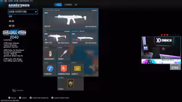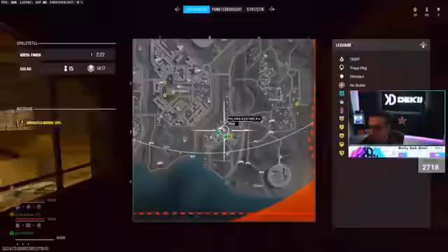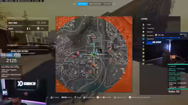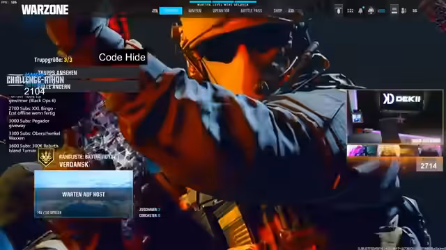 02:30:00Das Workout ist beendet, doch die körperlichen Beschwerden bleiben. Der Streamer klagt über Krämpfe und gibt an, sich wie 70 zu fühlen, obwohl er erst 29 ist. Danach konzentriert er sich auf die bevorstehende Warzone-Runde. Es kommt zu technischen Problemen, da er den Chat und das anderer Streamer nicht hören kann. Nachdem diese behoben sind, diskutiert das Team über Waffenbuilds und stellt sich für das bevorstehende Turnier ein, bei dem sie gegeneinander antreten werden.