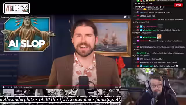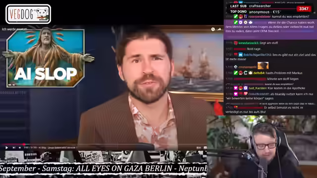 00:42:14Der Streamer geht auf einen Versprecher ein, bei dem das K-Wort gefallen ist, und diskutiert, wie oft er dieses Wort außerhalb der Kamera verwendet. Er distanziert sich vom 'Woken'-Begriff und fragt nach einer angemessenen Bezeichnung für Menschen mit Migrationshintergrund. Es wird eine Anekdote über Freunde erzählt, die aufgrund des Tragens von Palästinensertüchern fälschlicherweise als Hamas bezeichnet wurden. Der Streamer schlägt vor, ein Video anzusehen, das eine ausgearbeitete Konklusio bietet, und kritisiert den Dunkelparabelritter für die Verwendung von Copyright-Musik. Anschließend wird das Thema 'AI Slop' (KI-Schlamm) eingeführt, wobei der Streamer Beispiele von Inhalten auf TikTok nennt, die ihm negativ auffallen. Er äußert sich besorgt über politische Einflussnahme und psychische Belastung durch diese Inhalte und kündigt an, mehr darüber zu erzählen. Der Ursprung des KI-Schlamms wird diskutiert, und der Streamer warnt vor dem Konsum von Steroiden, wobei er betont, dass Testosteron in Maßen in Ordnung sei, aber von anderen Substanzen abgeraten wird. Er teilt seine Meinung, dass Steroide nur für Bodybuilding-Profis geeignet sind.