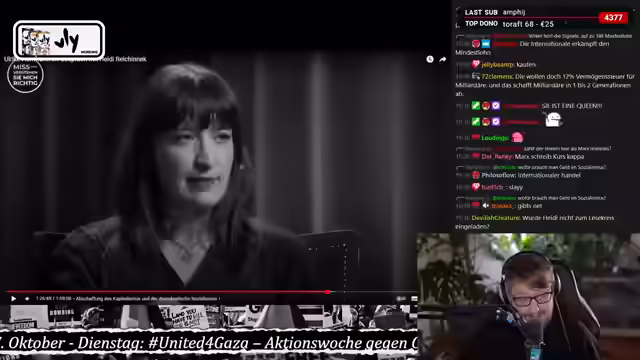 04:17:30Es wird auf den Vorwurf reagiert, dass der Streamer auf links tue, aber nach Irland abhaue, um Steuern zu sparen. Es wird argumentiert, dass man in Irland wenigstens keinen Völkermord finanziere. Es wird ironisch angemerkt, dass die Steuergelder irgendwann gegen die Engländer fließen. Es wird betont, dass es wichtig ist zu begreifen, dass die Dinge, die gemacht werden müssen, nicht von Parlamentariern abgenommen werden. Man dürfe nicht stillschweigend darauf warten, dass Sören Pellmann sich abspaltet, weil Völkermord kacke ist. Es geht um einen eigenen Regierungsanspruch, für den innerhalb der PDL alle Weichen gestellt werden. Es wird versucht, den Unvereinbarkeitsbeschluss rauszubekommen, weil man checkt, dass eine Zusammenarbeit zwischen CDU und Linken in Ostdeutschland potenziell die AfD verhindern könnte. Dies sei die Kerndegenerierung von bürgerlichem Antifaschismus. Was man brauche, sei eine fundamentale Opposition und zwar eine Linke, die parlamentarisch agieren kann. Das Einzige, was die AfD verhindern kann, sei die linke Fundamentale Opposition. Alle parlamentarisch operierenden Kräfte von PDL bis CDU sorgen dafür, dass immer mehr Arbeiter zur AfD strömen. Nur eine fundamental linke Opposition kann den Arbeiter zurück ins linke Lager holen. Die PDL sieht sich in der Aufgabe, Stimmen von SPD und Grünen zu holen, was aber nichts am Aufstieg des Faschismus verhindern wird. Die einzige Option, den Faschismus in Deutschland aufzuhalten, ist eine linke Fundamentale Opposition, wo sich die organisierte Arbeiterschaft hintersammeln kann. Die Entscheidung sei immer Faschismus oder Sozialismus. Entweder hat man eine Arbeiterklasse, die stark genug ist, um sich gegen die faschistische Erhebung zu wehren, oder man landet im Lager. Liberale Linke hätten die Faschismus-Verhindern-Doktrine so intrinsisch drin, dass dafür alle Mittel recht sind, insbesondere parlamentarische. Es wird betont, dass der Faschismus auch gegen sie vorgehen wird. Der Faschismus akzeptiert nur eine Meinung, nämlich den Faschismus. Entweder man marschiert mit oder man ist ein Feind.