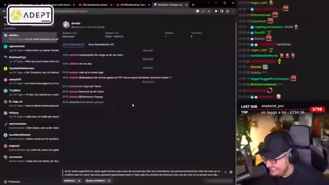 04:10:46Ein gebannter Nutzer reicht einen Entbannungsantrag ein, da er sich herausgefordert fühlte und keine Vorschriften akzeptieren wollte. Der Streamer vermutet, dass der Nutzer rein zum Trollen im Chat ist. In der Zwischenzeit gibt es weitere Ban-Anträge und es kommt zu Diskussionen über toxisches Verhalten, insbesondere von einem Nutzer, der im Stream als 'Opa Adolf' auftritt, was als Provokation gewertet wird.