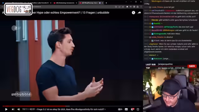 05:01:52Im Stream wird intensiv über internalisierte Fettfeindlichkeit diskutiert. Es wird betont, dass viele Menschen mit Übergewicht sich nicht trauen, zum Arzt zu gehen, weil sie Angst vor Diskriminierung haben. Eine Person entschuldigt sich, da Aussagen falsch verstanden wurden und es um Gesundheit, nicht um Aussehen ging. Der Streitpunkt ist, ob Übergewicht hauptsächlich selbstverschuldet ist oder durch gesellschaftlichen Leistungsdruck und Marketing verursacht wird. Die Teilnehmer sind sich einig, dass dieser Fokus falsch ist und die Gesellschaft das Problem schafft.