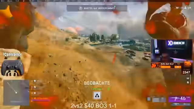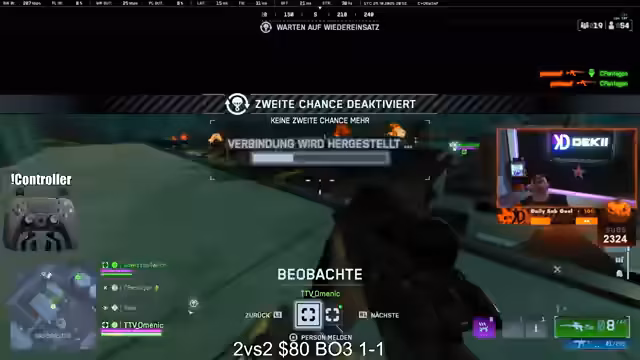 03:45:40Der Gewinner der Scuf-Controller-Verlosung wird bekannt gegeben: VA1DEZ, ein Zuschauer, der erst am selben Tag dem Kanal gefolgt ist, was für Überraschung und Freude sorgt. Der Streamer gratuliert dem Gewinner und erklärt, wie dieser Kontakt aufnehmen und seine Daten für den Versand des Controllers übermitteln kann. Anschließend bereiten sich die Spieler auf ein 2v2 Killrace-Turnier vor, das in Kürze beginnt. Sie diskutieren die Regeln und Strategien für das bevorstehende Match, wobei die Möglichkeit eines Replays aufgrund eines Disputs mit dem Gegner angesprochen wird. Trotz der Herausforderungen bleiben sie optimistisch und freuen sich auf die kommenden Matches.
