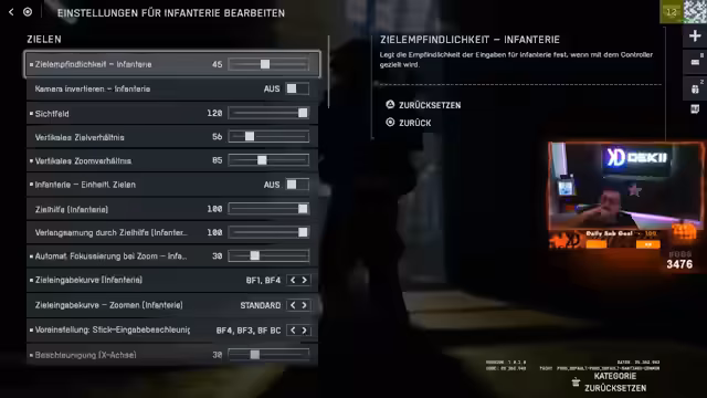 04:08:22Der Streamer konzentriert sich darauf, die Controller-Einstellungen in Battlefield zu erklären und anzupassen. Er gibt genaue Anweisungen zur Sensibilität und verschiedenen Einstellungsmenüs, um das Gameplay zu optimieren. Gleichzeitig äußert er seine anfängliche Skepsis gegenüber Battlefield, vergleicht es aber positiv mit einer '5 von 10'-Datin und findet Gefallen am 'cleanen' Gefühl des Spiels. Er betont, dass es sich nicht wie COD anfühlt, aber trotzdem Spaß machen kann.