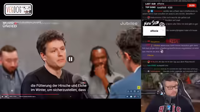 02:25:05Der Stream beginnt mit einer Diskussion über die Jagd und deren Einfluss auf die Population von Hirschen und Elchen. Es wird argumentiert, dass die Jagd durch den Menschen die natürliche Geschlechterverteilung stört, da hauptsächlich männliche Tiere getötet werden. Dies würde die Fortpflanzungsfähigkeit der Population beeinträchtigen, da ein Männchen mehrere Weibchen impfen könne. Der Sprecher stellt die ethische Frage in den Raum, ob das Töten von Tieren, wie bei der Jagd, prinzipiell verwerflich sei, auch wenn es unter dem Deckmantel des Naturschutzes geschieht. Er vergleicht das Töten eines Wildtiers mit dem Töten eines Hundes und fragt, wo die moralische Grenze verläuft.