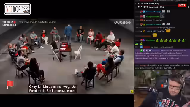 00:48:30Der Streamer beginnt eine ausführliche Diskussion über Veganismus. Er betont, dass dieser für ihn ideologisch wichtig ist, da er der Einstieg in eine systemkritische Haltung war, speziell in Verbindung mit dem Völkermord an den Palästinensern und dem Kapitalismus. Er positioniert Veganismus als notwendigen Schritt für die Bedarfsgerechte Bedürfnisbefriedigung in einer sozialistischen Gesellschaft und kritisiert politischen Veganismus als 'Moral-Dödelei'.