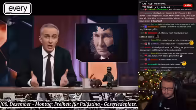 00:35:17In der Sendung wird angekündigt, dass Jan Böhmermann im ZDF Magazin Royal Russlands hybriden Krieg gegen Deutschland analysieren wird. Dieser Beitrag wird als wichtig dargestellt, um die angeblichen Angriffe Russlands auf deutsche Interessen aufzudecken. Der Streamer betont, dass Böhmermanns Video mit einem reißerischen Titel aufwartet und die deutsche Öffentlichkeit über die vermeintlichen Bedrohungen aufklären soll. Die Diskussion dreht sich um die Notwendigkeit, die russischen Einflussnahmen medial zu kritisieren und die deutsche Aufrüstung zu rechtfertigen.