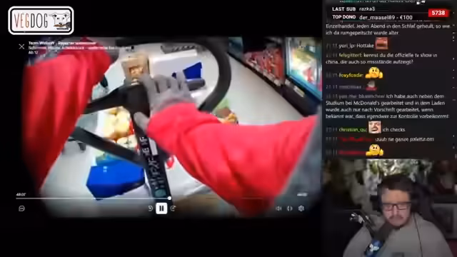 00:58:03Ausgehend vom Kaufland-Stream teilt der Streamer eine persönliche Geschichte aus seiner Zeit in der Einzelhandels-Ausbildung. Er erzählt von einem Überfall in einer Tankstelle, an dem er als Kassierer beteiligt war. Beschreibt die entspannte und fast spaßige Art, mit der er die Situation gehandhabt hat und gibt eine klare Haltung ab, dass Angestellte bei Überfällen niemals ihr Leben für das Geld des Unternehmens riskieren sollten. Er kritisiert die Haltung, dass man für den Arbeitgeber sterben sollte.