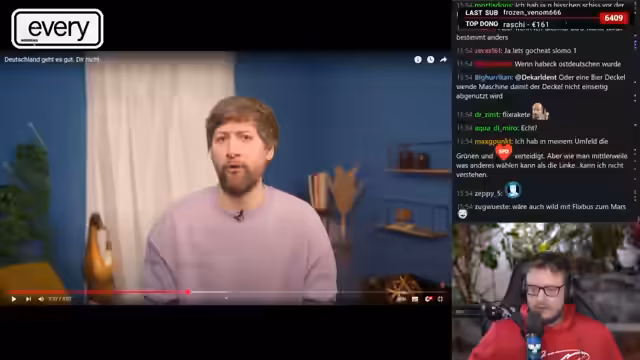 00:36:34Es wird dazu aufgerufen, wählen zu gehen und der Einzug ins Parlament soll gefeiert werden. Der Streamer kündigt an, sich das Raw Bubble Video anzusehen und fordert die Zuschauer auf, wählen zu gehen, falls noch nicht geschehen. Er appelliert an die Zuschauer, ihren Personalausweis zu nehmen und wählen zu gehen, auch wenn sie ihre Wahlunterlagen verlegt haben. Es wird ironisch angemerkt, dass man nicht schreiben sollte, dass man keinen Perso gebraucht hat, da dies zu Vorwürfen des Wahlbetrugs führen könnte. Der Streamer schätzt, dass Volt 32 Prozent erreichen wird und die Bundeskanzlerin stellen könnte. Er nimmt Bezug auf das Video 'Deutschland geht es gut, dir geht es nicht gut' und betont die steigende Anzahl der Beschäftigten in Deutschland sowie die niedrige Arbeitslosenquote im EU-Vergleich. Er kritisiert jedoch, dass die Auswirkungen der Pandemie und des Krieges in der Ukraine sowie die 'profithungrigen Kapitalisten' zu steigenden Preisen geführt haben. Gleichzeitig sei die Anzahl der Milliardäre und 'Privatiers' gestiegen, wobei er letztere als 'Schmarotzer' bezeichnet. Es wird die Frage aufgeworfen, wen die Zuschauer gewählt haben, und ironisch Volt als die gewählte Partei genannt.