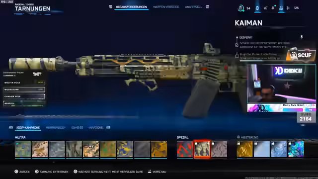 05:50:15Der Multiplayer wird von dem Streamer als sehr schwierig und frustrierend empfunden, da er die Lobbys als zu 'sweaty' und fordernd beschreibt. Er zieht es vor, sich auf das Freischalten der Tarnungen zu konzentrieren, anstatt für Gold oder Prestige zu spielen. Die Herausforderungen, insbesondere für die Gold-Tarnungen, wie 10x3 Kills ohne Sterben, werden als sehr schwierig und unmöglich in normalen Lobbys eingestuft. Ein vermeintlicher Bug im Multiplayer, der dazu führt, dass man beim Schießen schräg läuft, wird als extrem nervig und unmöglich zu kontrollieren beschrieben.