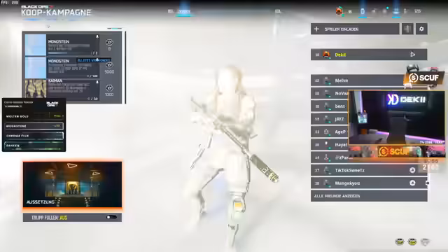 11:09:49Der Kern des Streams dreht sich um das Grinden von Tarnungen in Black Ops 7. Der Streamer erkundet verschiedene Modi und Maps, insbesondere den Zombie-Modus, und stellt die Schwierigkeit des Grind-Prozesses heraus. Die technische Seite des Spiels wird thematisiert, etwa die Verwirrung über den richtigen Modus zum Leveln und die Schritte zur Freischaltung bestimmter Inhalte wie den Koop-Modus nach Abschluss der Kampagne. Es werden Schwierigkeiten bei der Zielaufnahme und die Besonderheiten bestimmter Waffen-Operators diskutiert.
